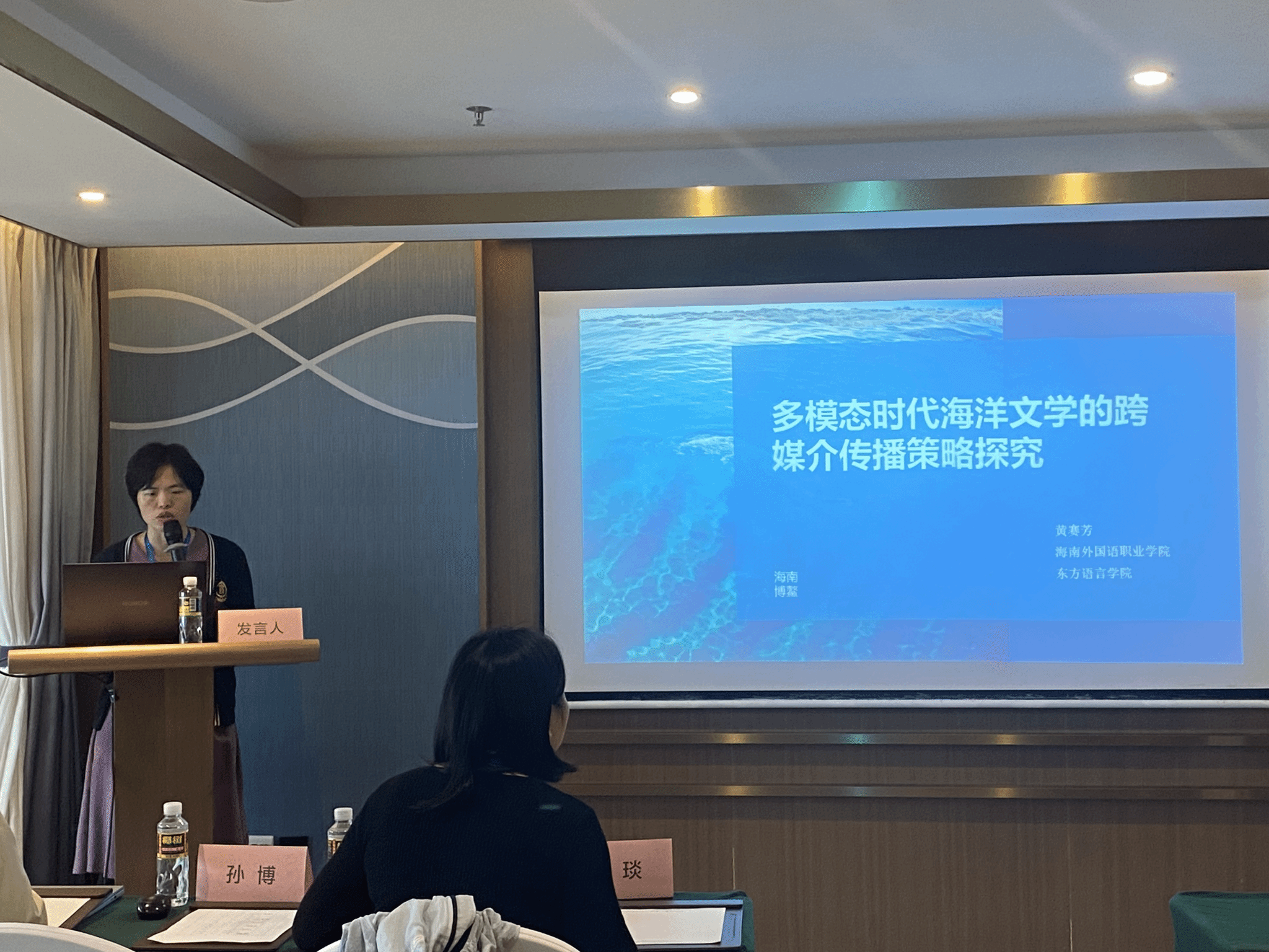 海南省比较文学与世界文学学会副会长、开云官网产学研发展中心副主任孙博带领东方语言学院日语学科带头人黄赛芳、东盟语言教研室主任陈俊源、阿拉伯语教师张楚薇博士和老挝语教师梁瑜参会。