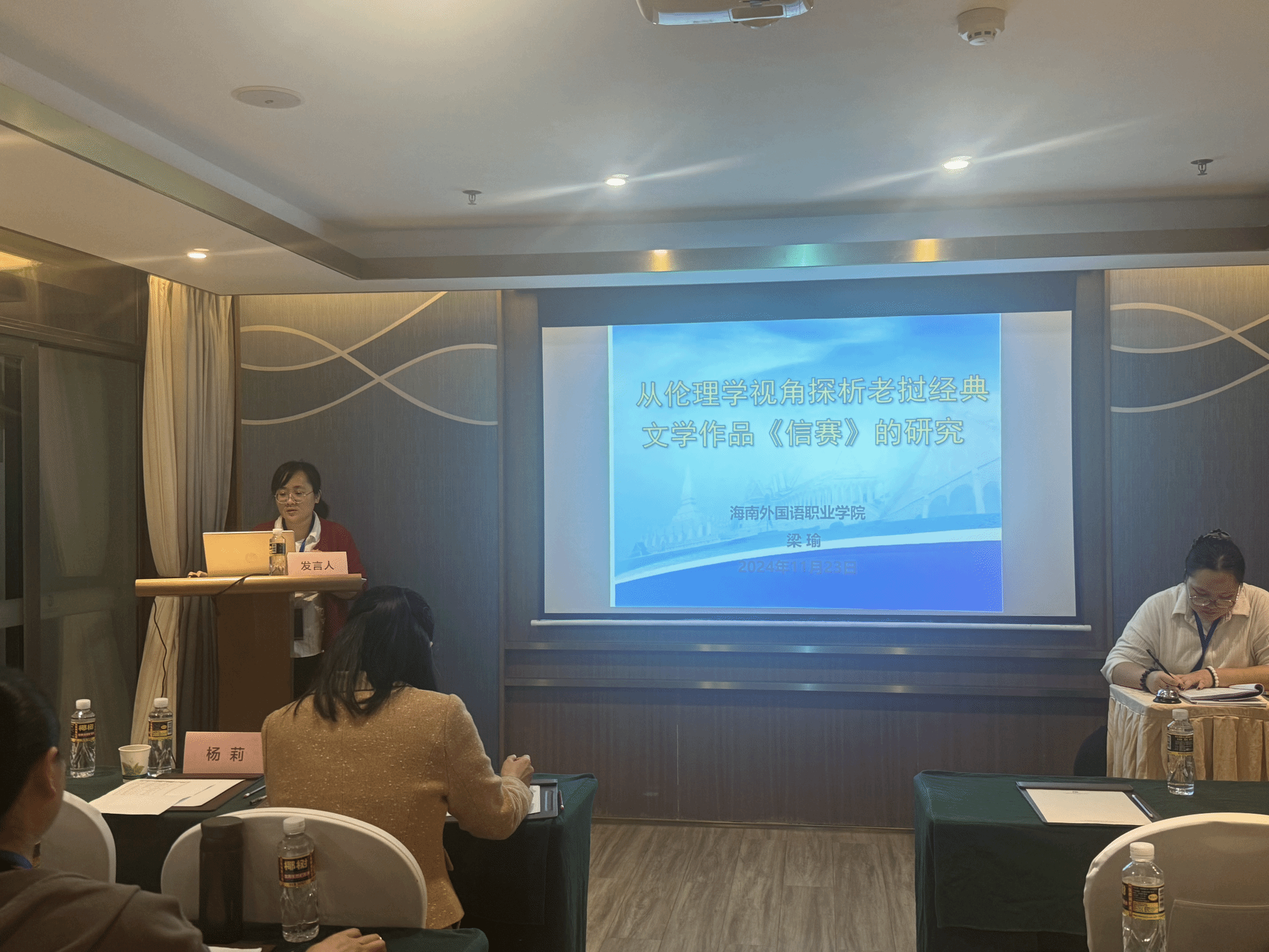 梁瑜老师作题为“从伦理学视角探析老挝著名文学作品《信赛》的研究”的主旨发言,主要对作品中人物的道德伦理抉择与冲突、隐含的课程思政元素等方面进行探讨,分析该作品所蕴含的深刻文化内涵,揭示其在道德教诲、文化传承及社会和谐等方面的重要价值。