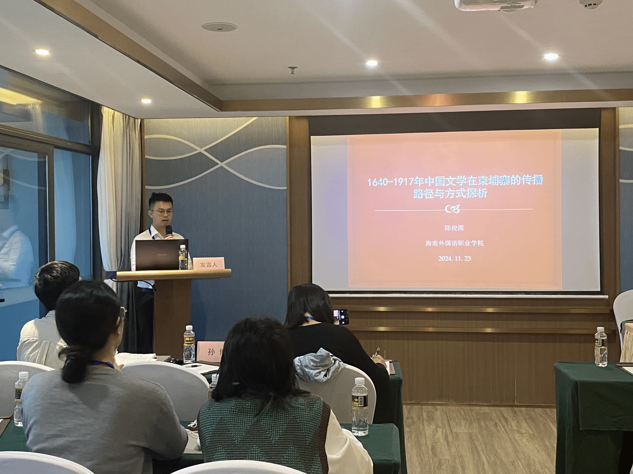 陈俊源老师作题为“世界近代史时期中国文学在柬埔寨的传播路径与方式”的主旨发言,主要运用比较文学流传学的理论与方法,重点讨论1640—1917年中国文学在柬埔寨的本土化特征。在当今全球化的时代背景下,回顾这段历史,能让我们深刻认识到中国与东盟国家开展人文交流的重要性,为我们进一步推动中国与东盟国家之间的文学文化交流提供了宝贵的历史借鉴与启示。