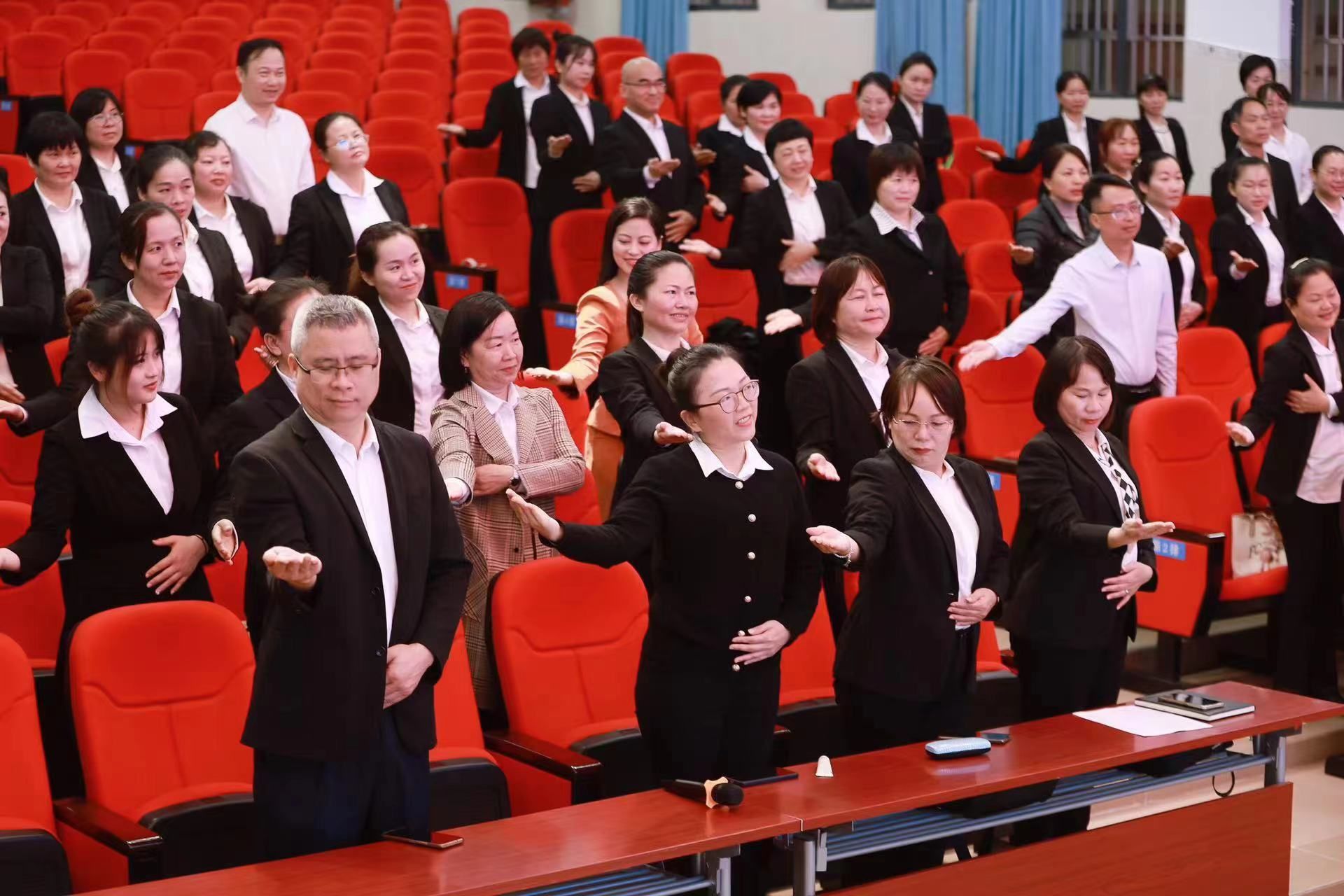 为提升教师文明素质,增强教师待人接物素养和展现良好的教师精神面貌,文昌市树芳小学特邀请国际旅游学院吕洁如老师为全体教师作教师礼仪培训。2024年3月8日下午,吕洁如老师对全体101名教职工进行了主题为《展职业风采.做魅力教师》的教师礼仪培训。课程中,吕老师围绕教师礼仪,讲述了文明礼仪对教师职业的重要性,从着装礼仪、仪表礼仪,行为举止礼仪、表情礼仪等方面,为老师们提供了指导。为了活跃课堂气氛,吕老师将学员分成5个小组进行教师礼仪PK赛,并为获胜小组颁发礼物,既活跃了课堂气氛,也充分发挥了老师们的主观能动性,效果得到学校领导和教职工们的一致认可。
