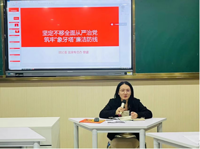 曾盛紧紧围绕党课主题,从学习贯彻习近平总书记关于全面从严治党重要论述、“象牙塔”五大现象值得警惕、如何还菁菁校园一片净土等三个方面,结合高校的违纪违法典型案例进行了生动阐述,引导党员教师从中吸取教训,引以为戒,敬畏政治纪律,筑牢廉洁防线。