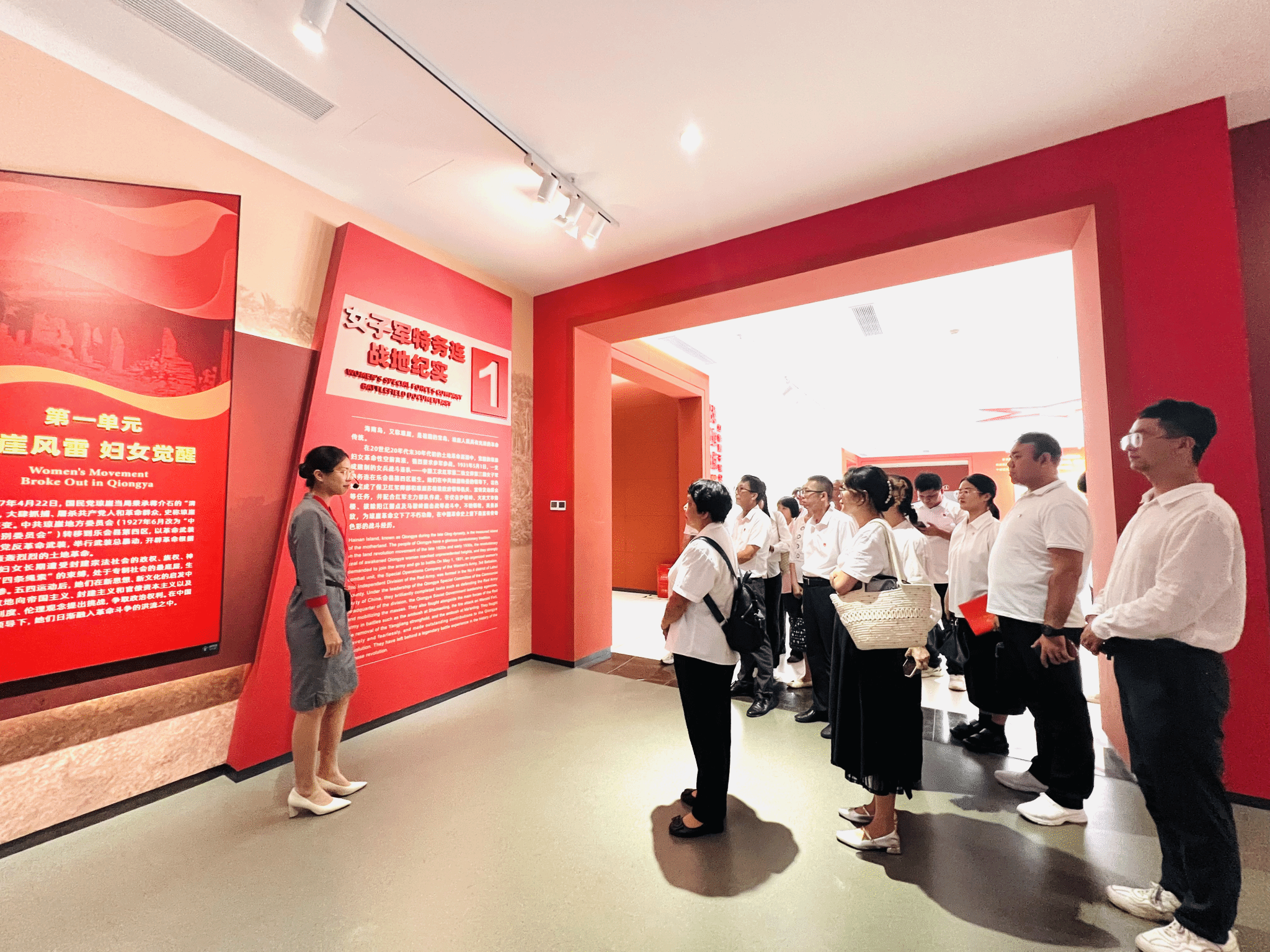 第一站来到来到红色娘子军纪念馆。全体党员跟随讲解员参观红色娘子军这支特殊队伍的事迹展,观看介绍视频,了解海南妇女参与革命斗争的这段波澜壮阔的历史。“向前进!向前进!战士的责任重,妇女的冤仇深,古有花木兰,替父去从军,今有娘子军,扛枪为人民。向前进!向前进!战士的责任重,妇女的冤仇深!”这是电影《红色娘子军》的主题曲《红色娘子军军歌》中的歌词,也代表着红色娘子军“巾帼不让须眉”的精神。红色娘子军是中国革命史上富有传奇色彩的女子战斗队,作为一个战斗编制,虽只存在了一年多的时间,但红色娘子军精神却一直鼓舞着一代又一代的人民,影响着越来越多的妇女群众投入到革命当中。直至今日,在新的时代潮流中红色娘子军继续发挥“妇女能顶半边天”的独特作用,凝聚起改革发展稳定的巾帼正能量。