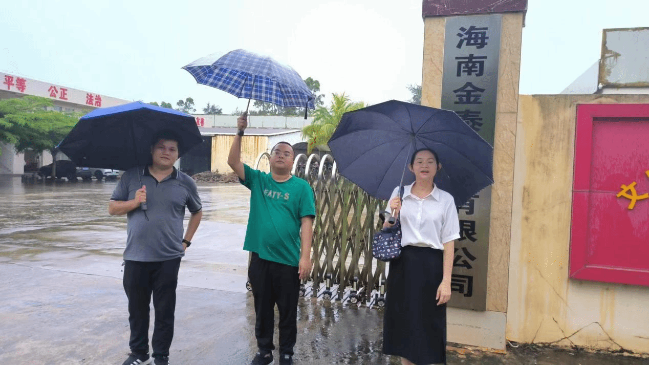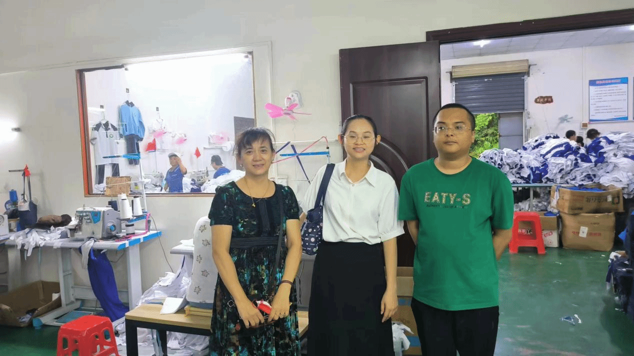 辅导员、实习就业指导员带就业困难学生张亮到文昌市会文镇海南金泰服装厂面试