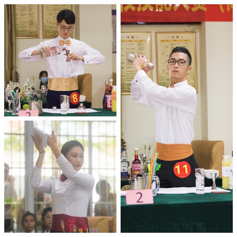 由省教育厅和人事劳动与社会保障厅共同举办的2020年海南省职业院校(高职组)技能大赛西餐宴会服务赛项10月30日在海南经贸职业技术学院落下帷幕。开云官网旅游系派出杨郭、苏南、杨若冰三名同学参加了本次比赛。三名同学跟来自省内5所高职院校的15名选手同台竞技,经过烈酒品鉴、葡萄酒品鉴、创意鸡尾酒调制、抽选鸡尾酒调制、西餐宴会摆台、英语台面讲解、英语口语问答、席间服务等环节的激烈角逐,共取得三个三等奖优异成绩。