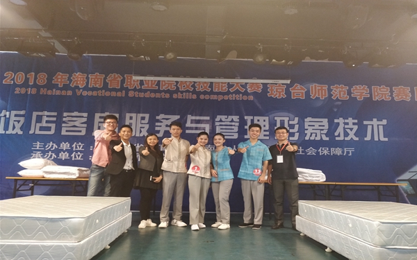 3月24日-25日,2018年海南省职业院校技能大赛(高职组)“饭店客房服务与管理形象技术”赛项在琼台师范学院赛区举行。我院旅游系吴多裕、柯彩云、何小兵、林小桂4名同学组成2个参赛团队,于来自全省高职院校的18个参赛团队的36名选手进行了精彩角逐,选手们不惧挑战敢攀登,分别获得了二等奖和三等奖的好成绩。