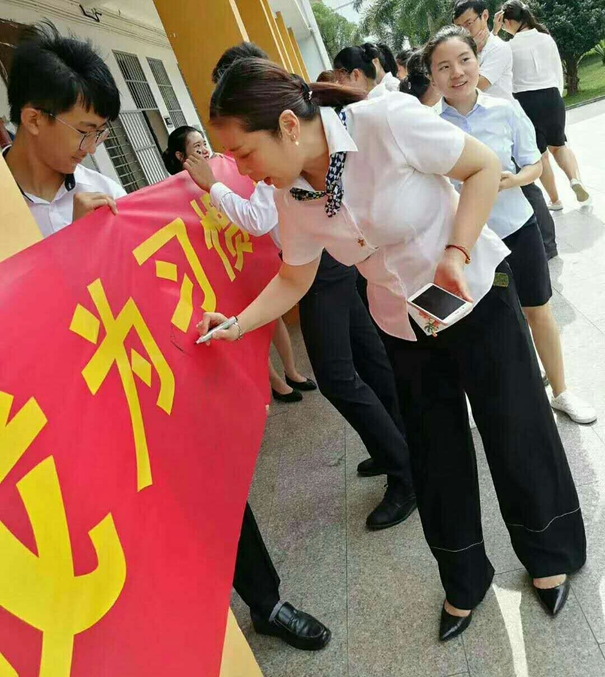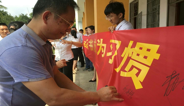 最后,全体师生宣誓“让读书成为习惯,让积累成就辉煌”,师生们踊跃在宣言横幅上签名纪念。