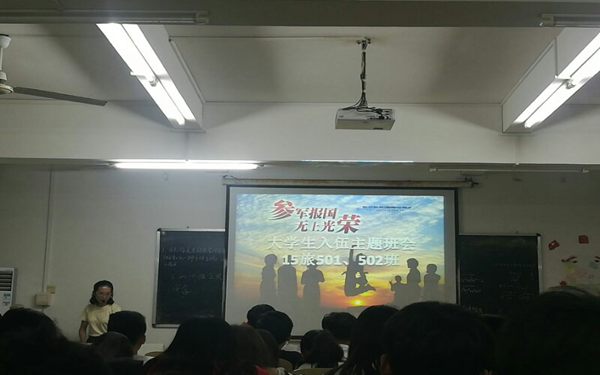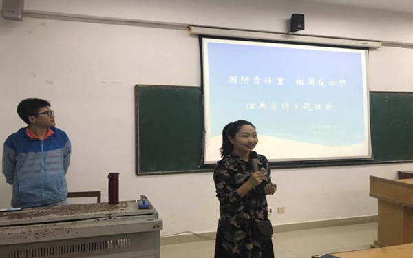 为了加强我系学生的爱国主义教育,增强学生的国防意识,激发学生参军热情,引导学生响应祖国的号召、投笔从戎,到军营建功立业。我系于4月1日在系部针对在校的班级召开大学生入伍主题班会。