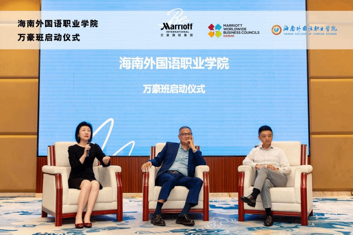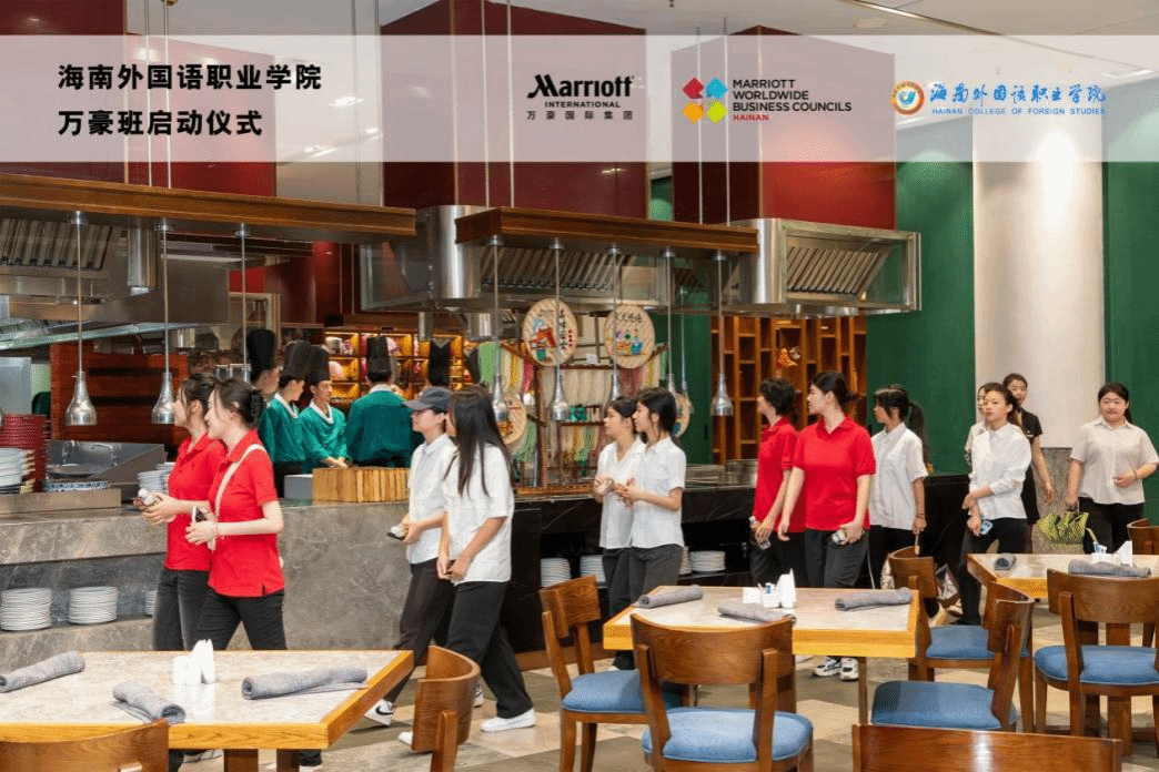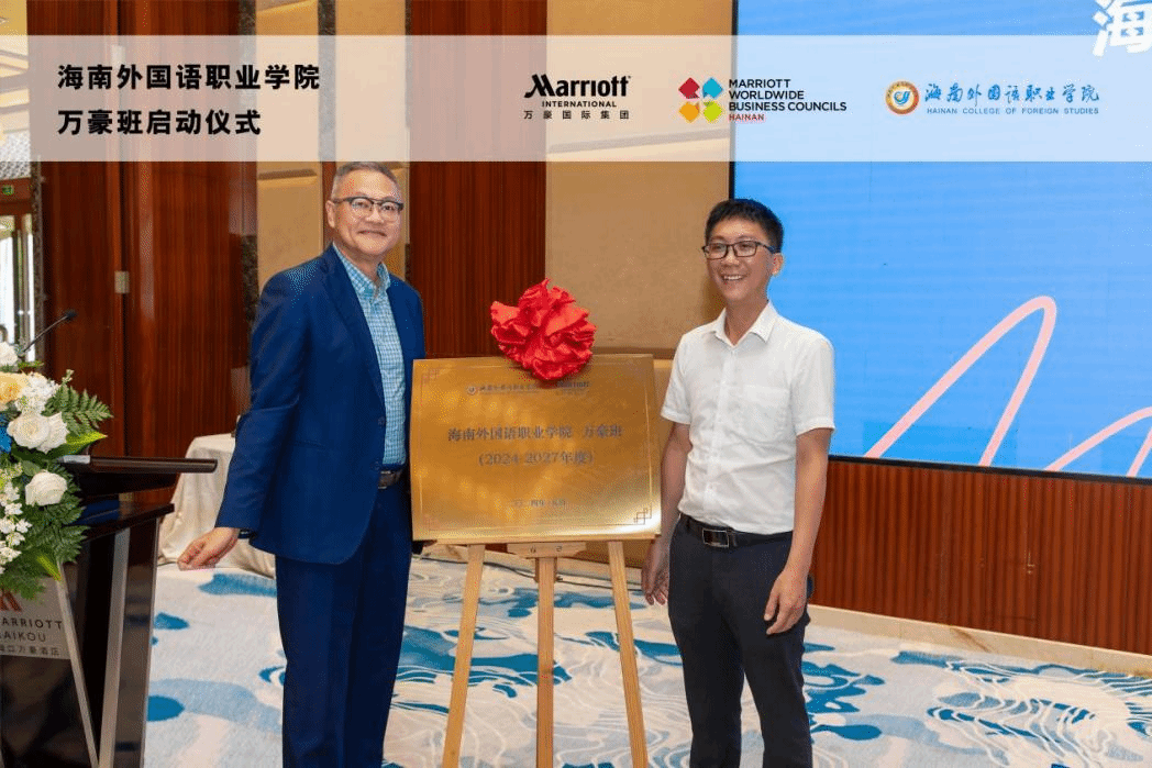 开班仪式现场,谢孟和万豪国际海南区代表,三亚亚龙湾万豪酒店总经理高锦洪分别代表校企双方致辞。双方均表示优质的校企合作是对学生,学校和酒店三赢的积极举措,通过万豪班的开办,世界第一大酒店集团万豪国际可以将酒店的运营培训拓展到学校,学校方面通过开展企业课堂能让学生们学习到最前沿最实用的专业知识技能,参加万豪班的学生们可以接受到来自校企双方理实一体教学体验,并可以优先加入万豪集团梦想家等员工培养计划,为自己未来酒店职业生涯的发展奠定坚实的基础。