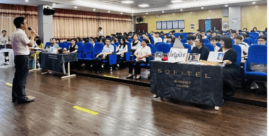 4月25日,雅高酒店集团旗下海南锦颐酒店投资管理有限公司海口索菲特大酒店、三亚皇圃大酒店有限公司、三亚理文索菲特度假酒店、三亚林海旅业有限公司、三亚湾海居铂尔曼度假酒店等高端酒店到我院做管培生订单班项目宣讲和校园招聘。
