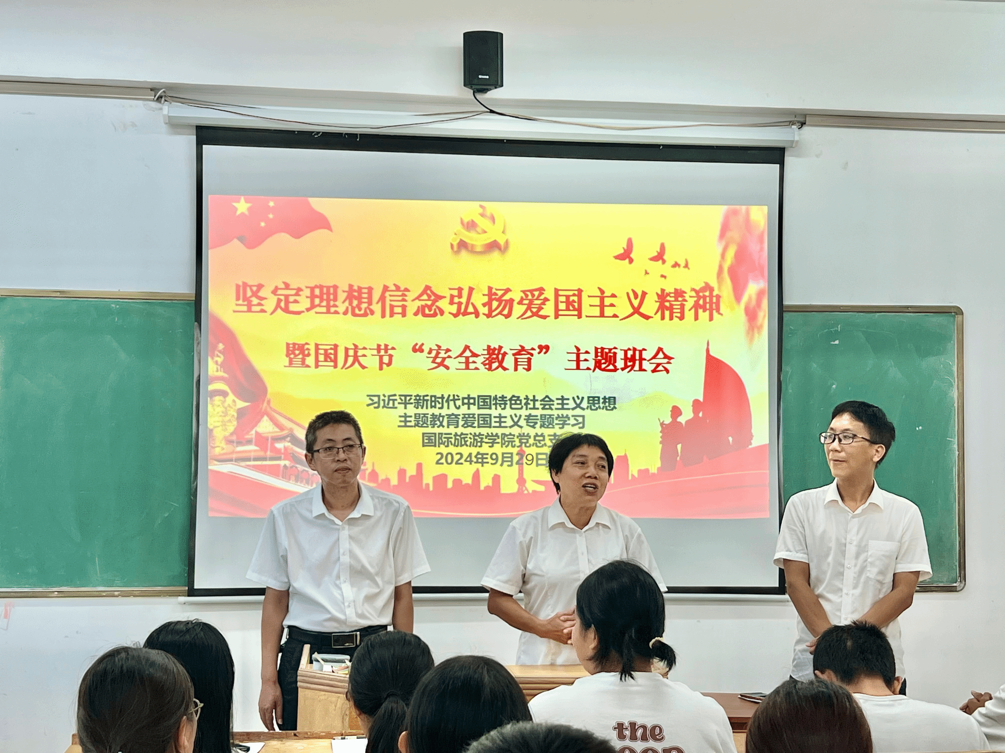 9月29日下午,我院召开主题班会开展爱国主义教育暨国庆节前安全教育,引导同学们坚定理想信念,筑牢信仰之基,弘扬爱国主义精神,培养同学们国家认同感和社会责任感。同时,提高同学们的安全意识,确保他们能够安全、愉快地度过假期。
