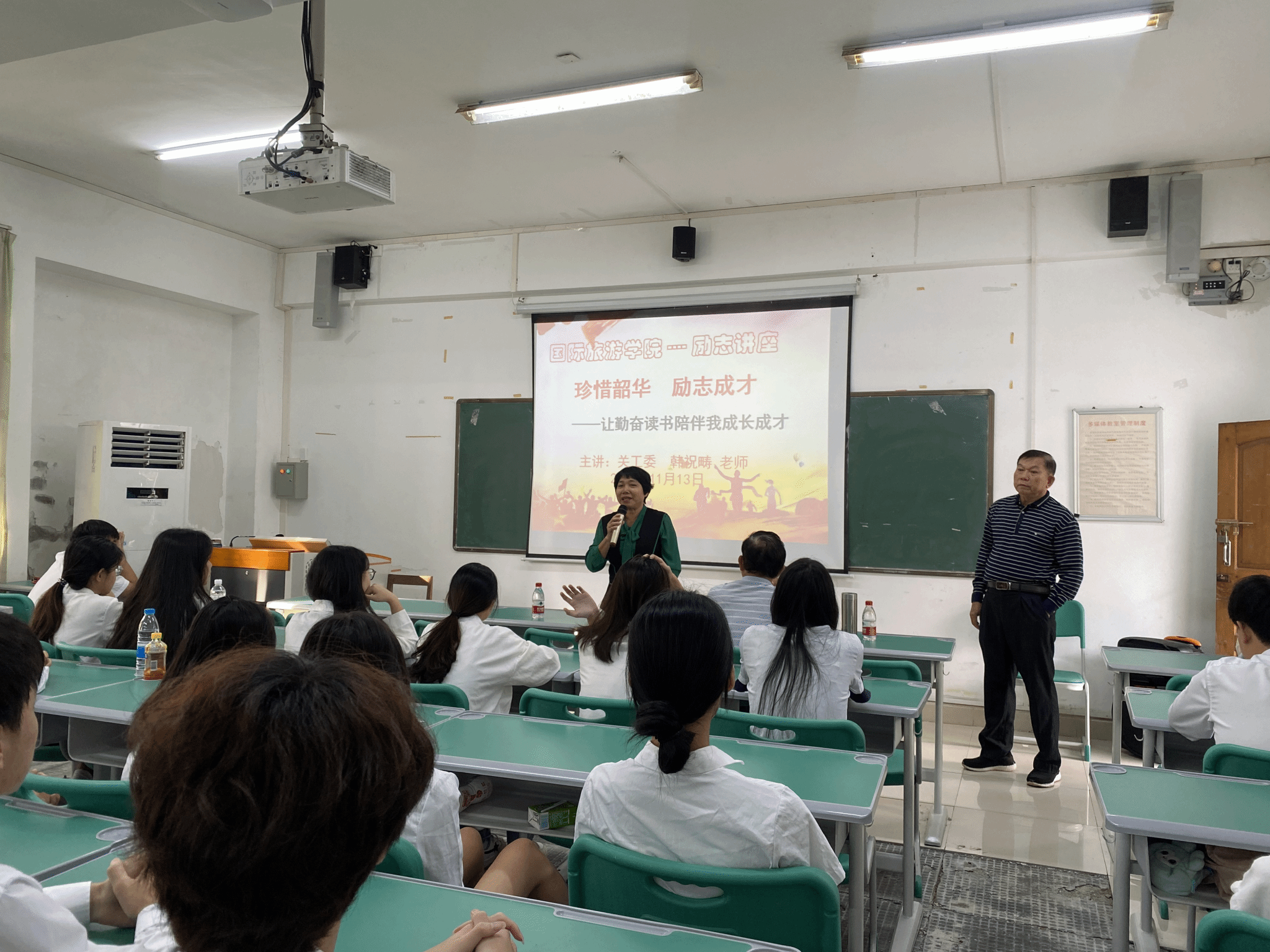 青春如火,梦想闪耀;拼搏奋进,铸就辉煌。为激发学生的内在潜能,点燃他们的学习热情,并坚定他们的奋斗意志,2024年11月13日上午,国际旅游学院在多媒体12教室隆重举办了一场以“让勤奋读书陪伴我成长成才”为主题的励志讲座。此次讲座特邀学校关工委主任韩祝畴主讲,面向国际旅游学院中职二年级的全体学生,为他们带来了一场心灵与智慧的双重盛宴。
