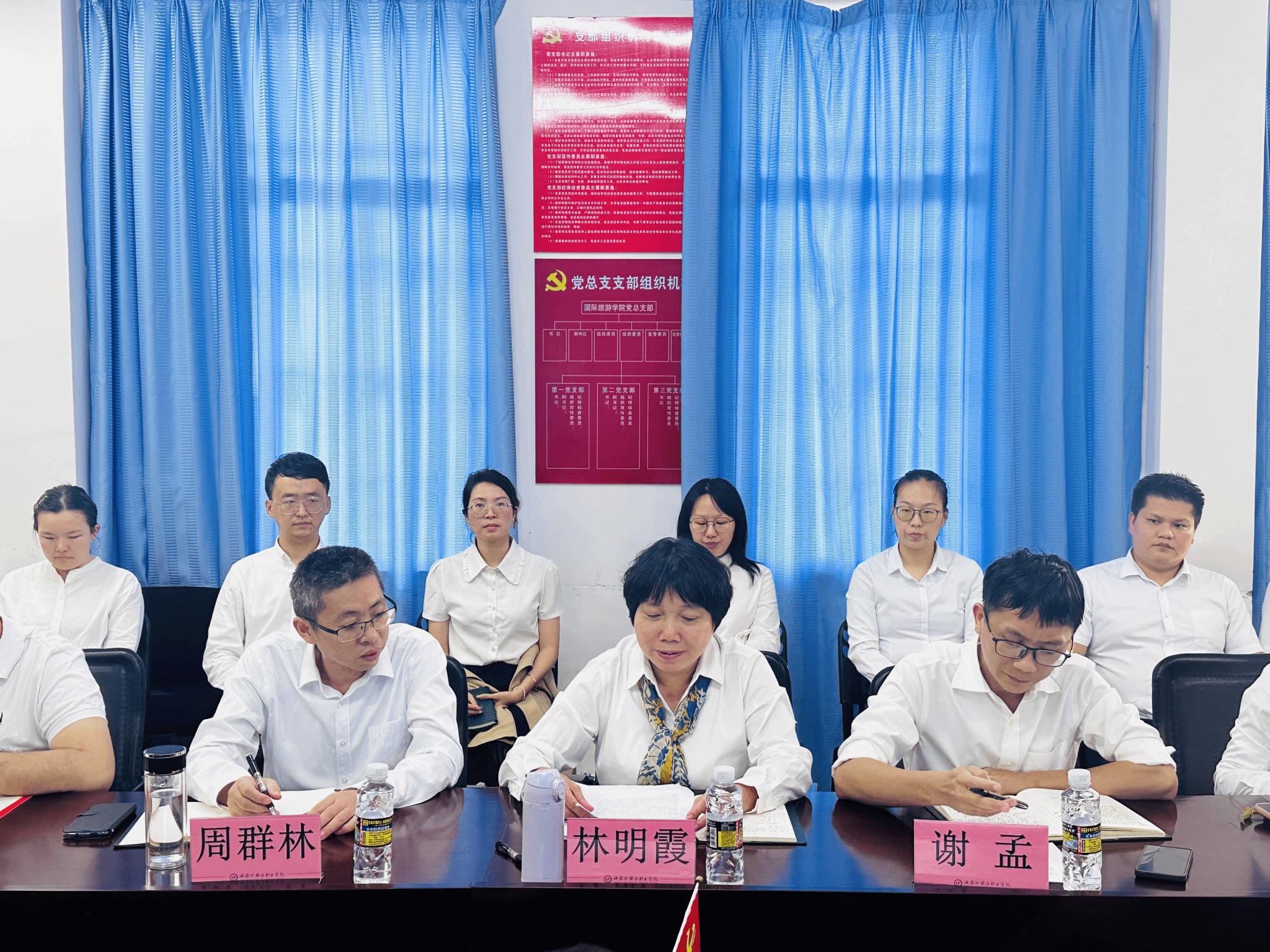 首先,由我院党总支书记林明霞对参会人员做了简要介绍。紧接着,我院副院长谢孟就学院的生源结构、专业和课程建设、师资队伍、人才培养模式和面临的困难不足等方面进行了详细的汇报。