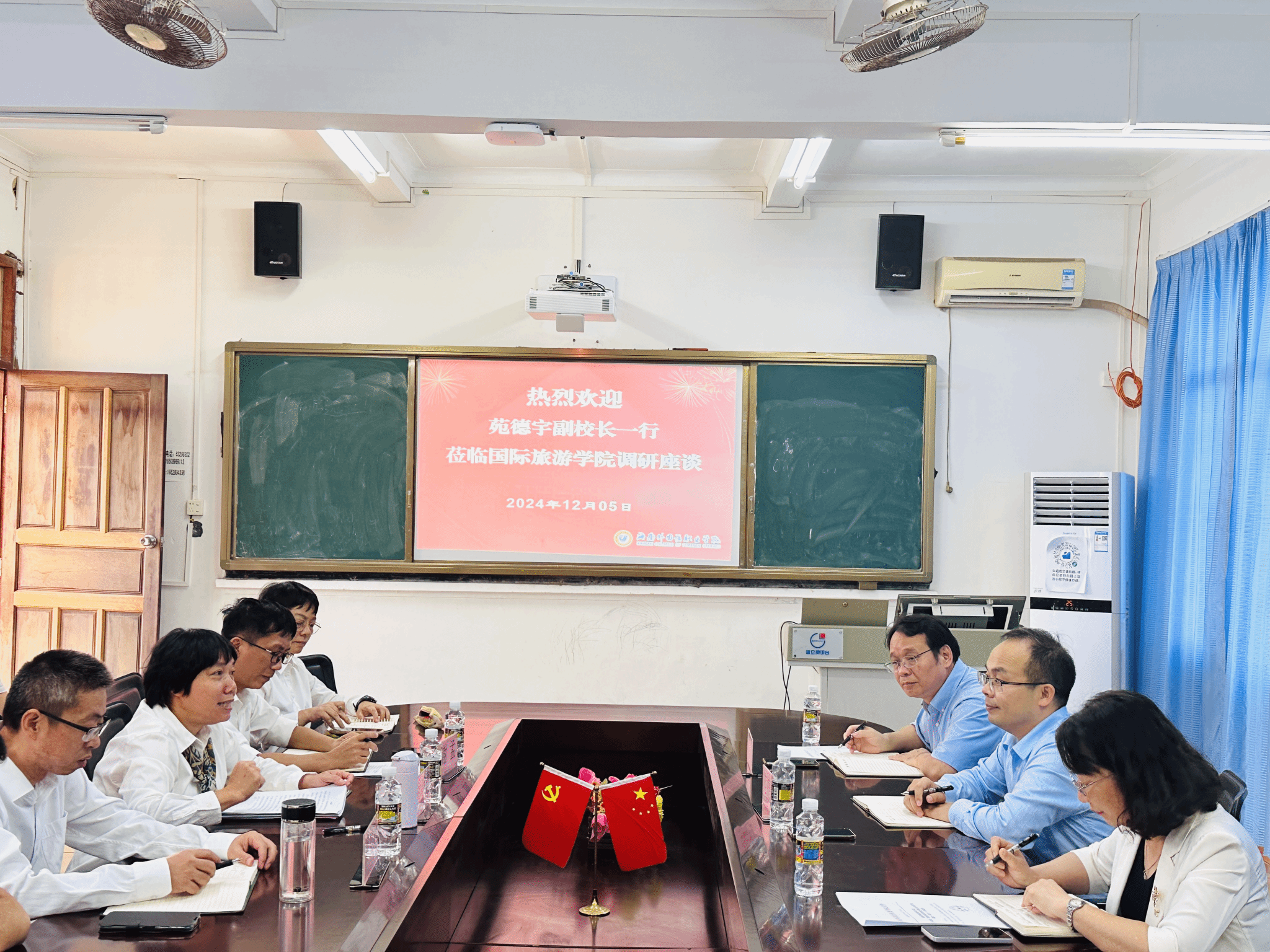 为进一步了解开云官网各学院目前发展情况、当前面临的困难和问题以及未来发展规划,12月5日下午,学校党委委员、副校长苑德宇率队到国际旅游学院开展调研。国际旅游学院全体教师参加调研座谈会。
