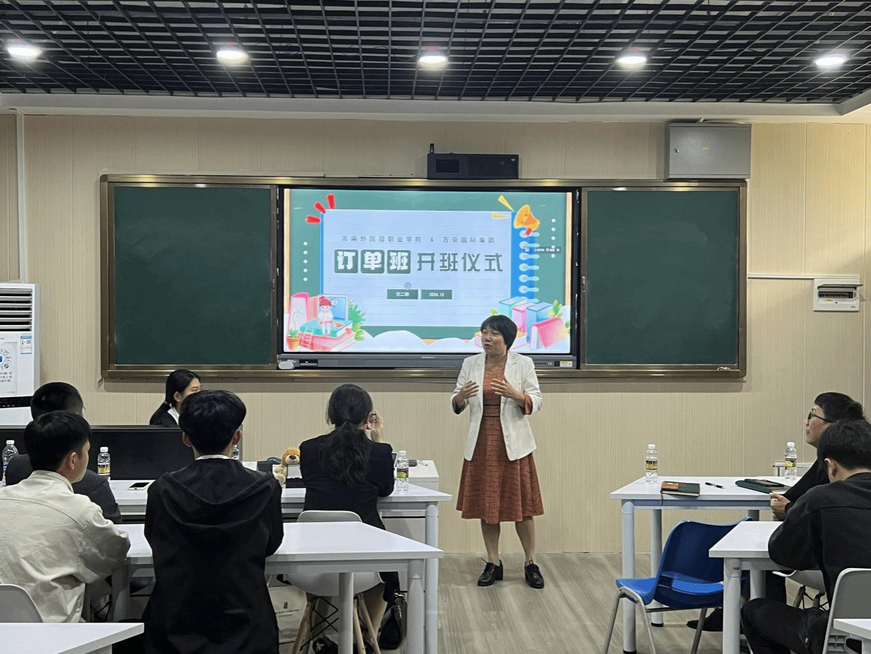 本次开班仪式由学院党总支书记林明霞、副院长谢孟、党总支副书记周群林以及海口万豪酒店房务总监袁金龙、人力资源经理张小夏、学习与发展经理马喆、三亚金茂丽思卡尔顿酒店招聘经理李宁馨共同出席。双方领导在致辞中回顾了第一届订单班的丰硕成果,深入探讨了校企合作对人才培养的重要意义,并对新学员们表达了美好的期望。