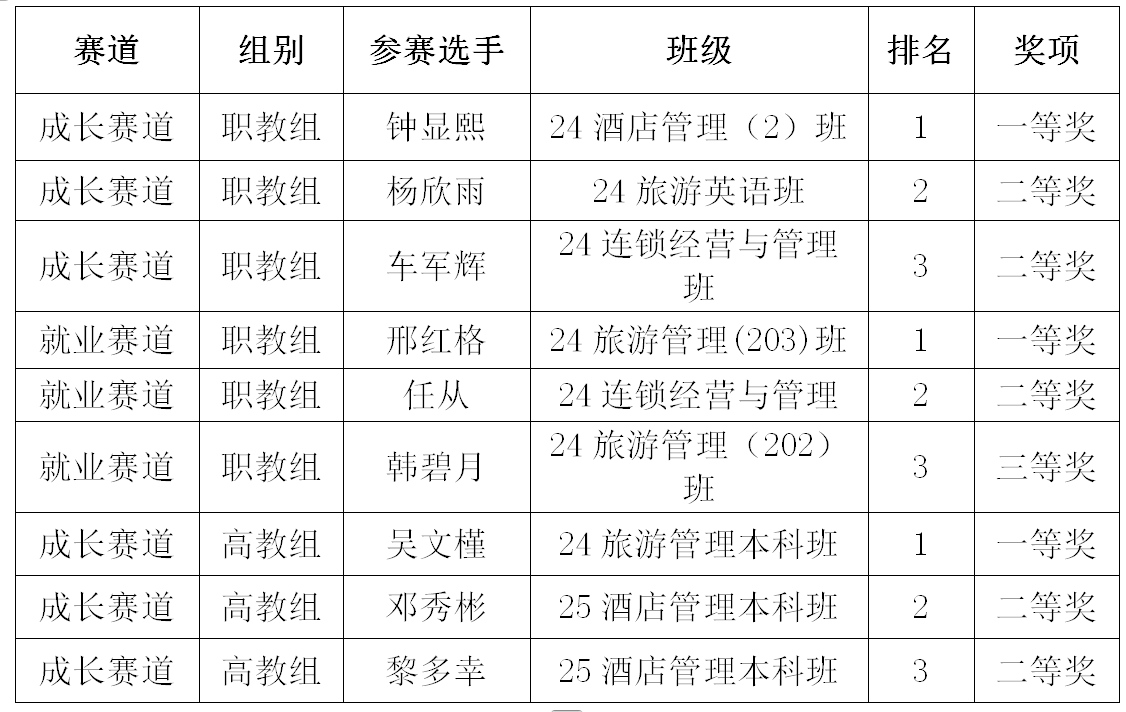 成长赛道职教组的钟显熙、杨欣雨和车军辉,就业赛道职教组邢红格、任从和韩碧月等表现突出,将作为我院代表参加开云官网校级大学生职业规划竞赛,成长赛道高教组的吴文槿、邓秀彬和黎多幸等同学将由学院推荐参加海南热带海洋学院的校级大学生职业规划竞赛。