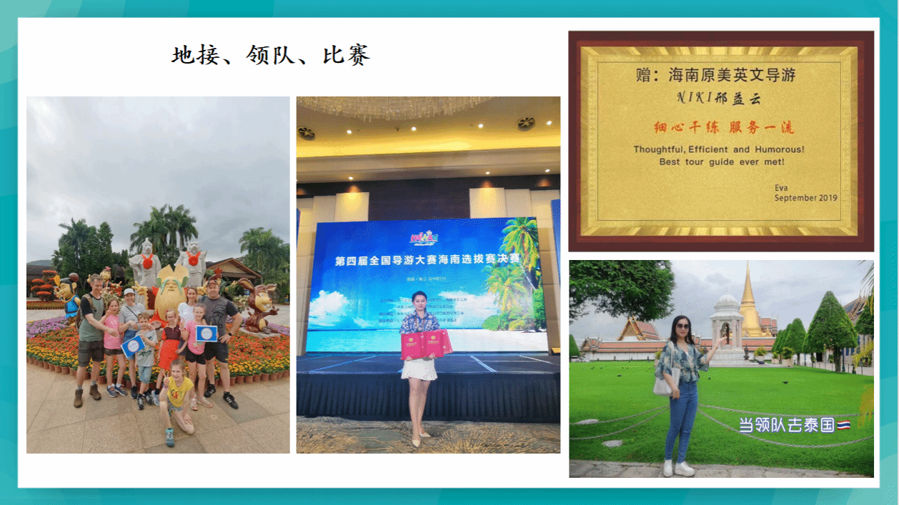 毕业前,我入职海南康泰旅游股份有限公司实习,毕业后正式留任。在康泰期间,我把一线导游相关的岗位几乎都做了一遍 —— 从中文导游、英文导游,到全陪导游、出境领队,全方位扎根旅游服务一线。这段经历里,我接待过 10 多个国家的外国游客,积累了丰富的旅游一线实战经验,也为我后来转型旅游定制师打下了坚实基础。