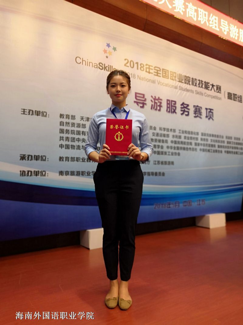 我系学生在“2018年全国职业院校技能大赛导游服务赛项”三等奖