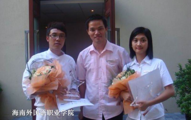 我院毕业生(中、右一)获三亚丽思卡尔顿酒店五星员工奖