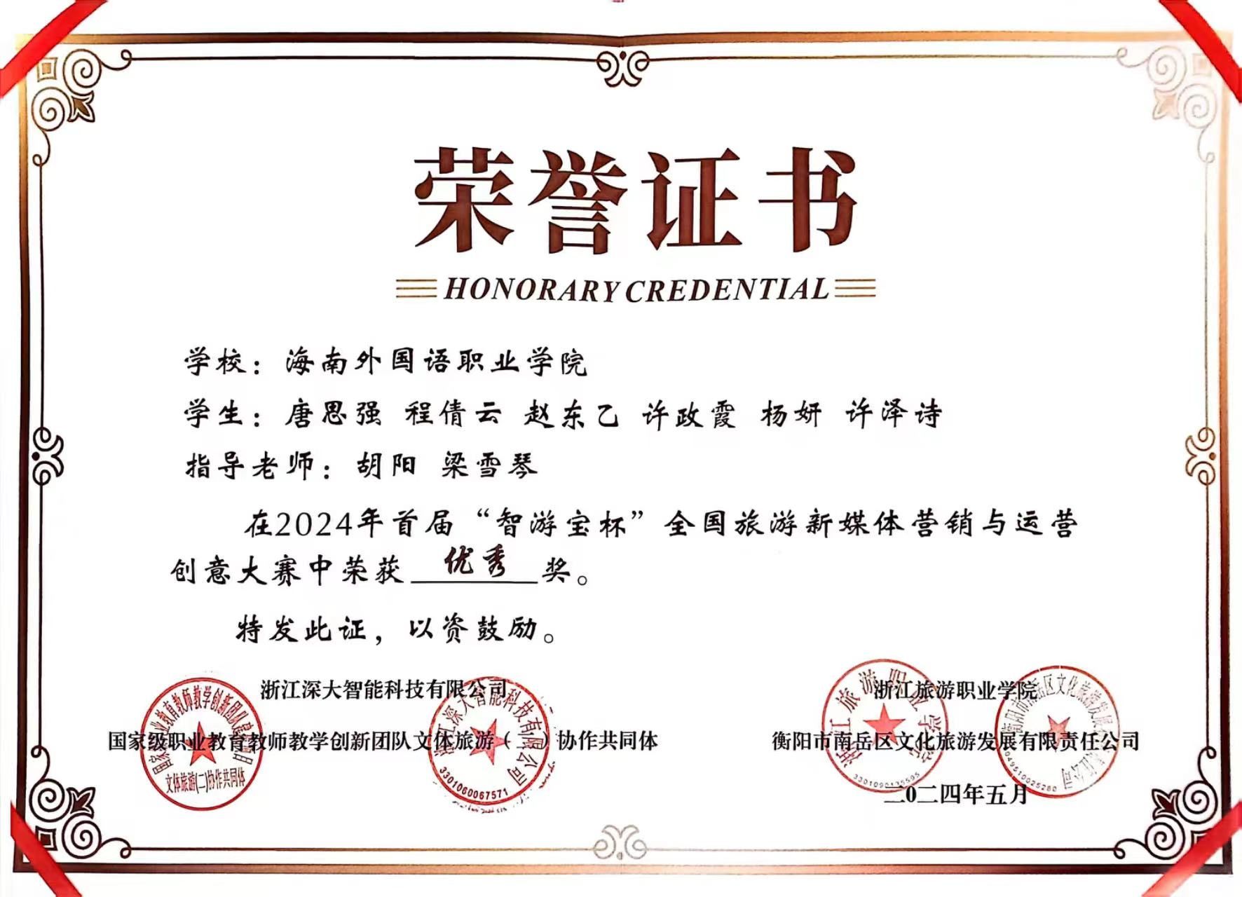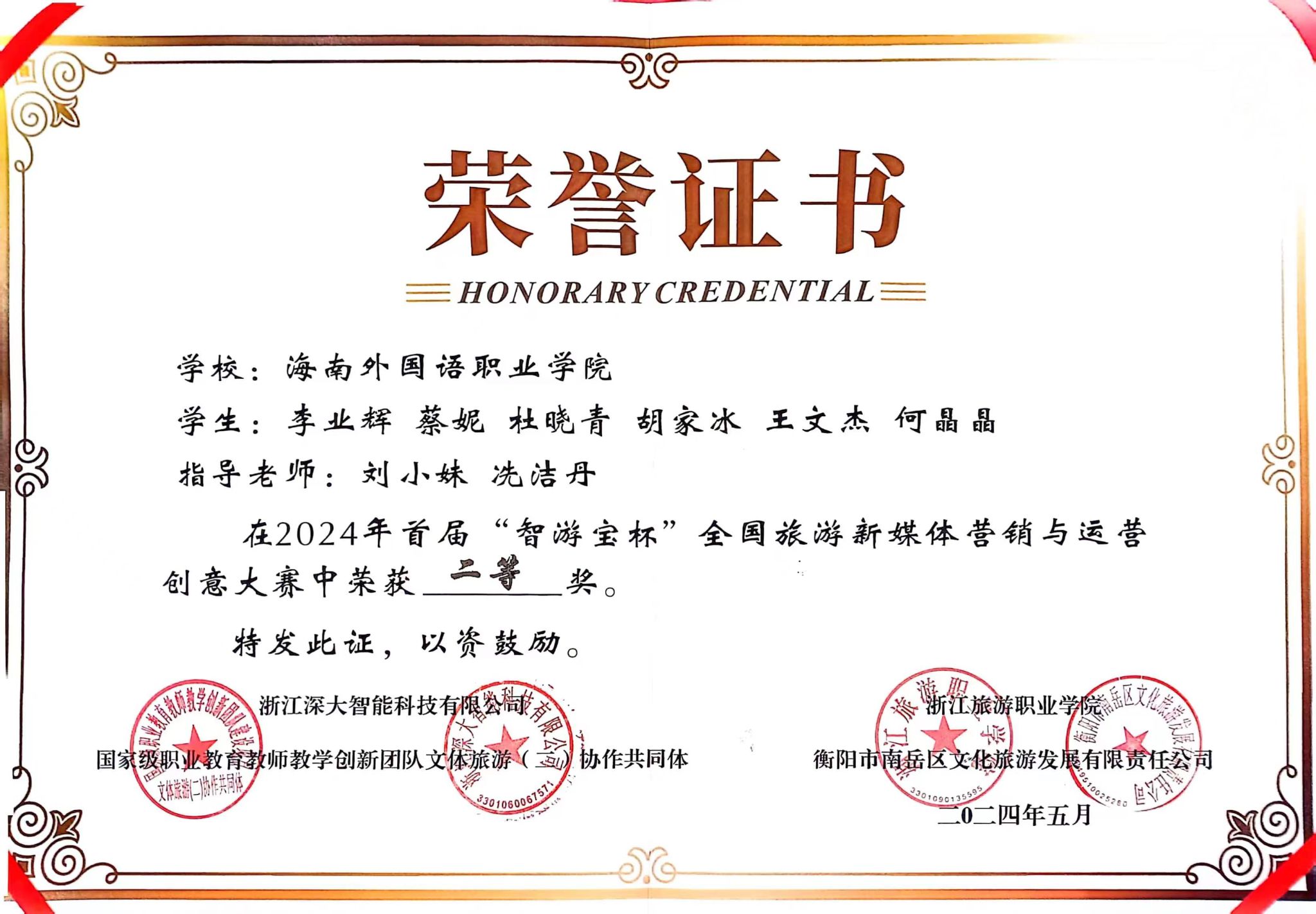 喜讯!我院学子在2024年首届“智游宝杯” 全国旅游新媒体营销与运营创意大赛中喜获佳绩