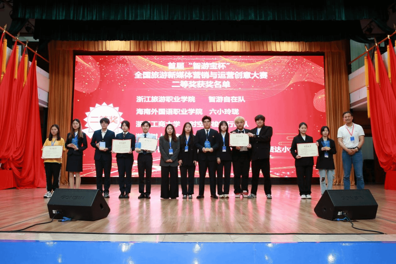 5月19日,2024年首届“智游宝杯”全国旅游新媒体营销与运营创意大赛中成功落幕,我院“六小玲珑”(选手:李业辉、王文杰、胡家冰、杜晓青、何晶晶、蔡妮)和“光影之队”(选手:唐思强、程倩云、赵东乙、许政霞、杨妍、许泽诗)两支队伍凭借出色的营销策略和创新思维,赢得了评委的一致好评,取得了二等奖和优秀奖的优异成绩。这不仅是对学生们能力的肯定,也是我院教育教学质量的显著体现。