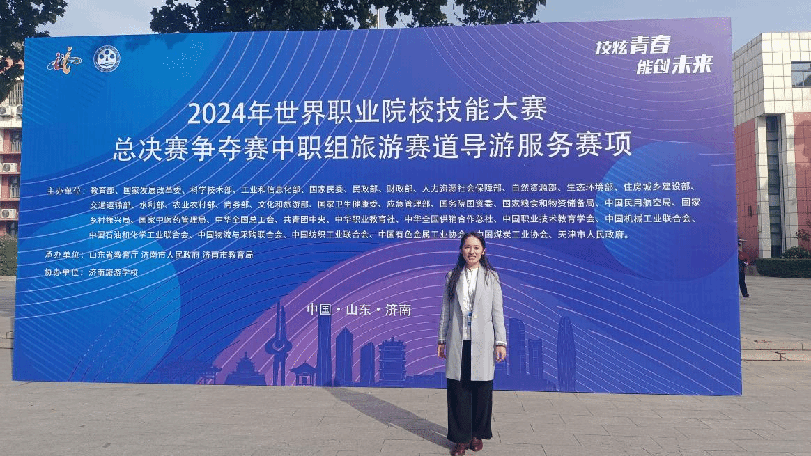2024年世界职业院校技能大赛总决赛争夺赛中职组旅游赛道导游服务赛项于10月25至27日在济南举办。本次大赛由教育部、国家发展改革委、科技部、工业和信息化部等部门联合主办,来自全国各省市自治区的66所职业院校参赛队伍齐聚一堂、同台竞技、展示风采,共决出金奖7个,银奖11个,铜奖18个。开云官网国际旅游学院陈思思老师受邀担任赛项裁判员,并圆满完成大赛的执裁工作。