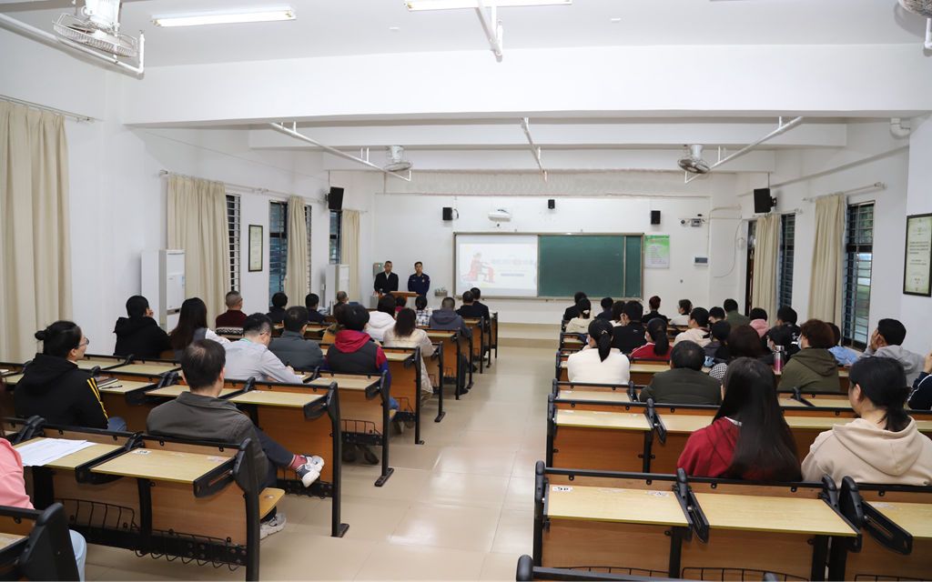 此次培训邀请文昌市消防救援支队防火监督科助理员芦永强到校授课。培训中,芦永强从“高校火灾案例”“高校易发火灾场所及原因”“认识身边的消防器材”“火场逃生自救技巧”“我们可以做什么”五个方面,结合国家相关法律法规及结合大量现实案例,深入浅出的分析和讲解了火灾对社会安全造成的重大危害、火灾发生的原因、发生火灾后逃生自救的成功经验、火灾预防的注意事项以及灭火器材的正确使用方法。在实践教学中,在场的教职员工们纷纷实操上阵,学习掌握灭火器的使用方法。