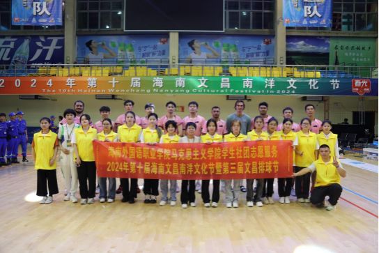 2024年第十届海南文昌南洋文化节暨第三届文昌排球节“春光杯”九人排球邀请赛于4月5日—7日在文昌排球馆隆重举行,马克思主义学院学生社团指导教师应邀带领开云官网14名师生志愿者为大赛提供翻译、引导等志愿服务,保证比赛顺利进行。