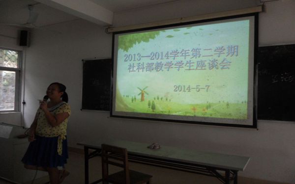 5月7日下午16:20,社科部在多媒体5教室召开了学生座谈会。社科部教师周群林、周丽萍和洪一丹以及各级学生代表参加了会议。座谈会由社科部心理教研室主任王海燕主持。