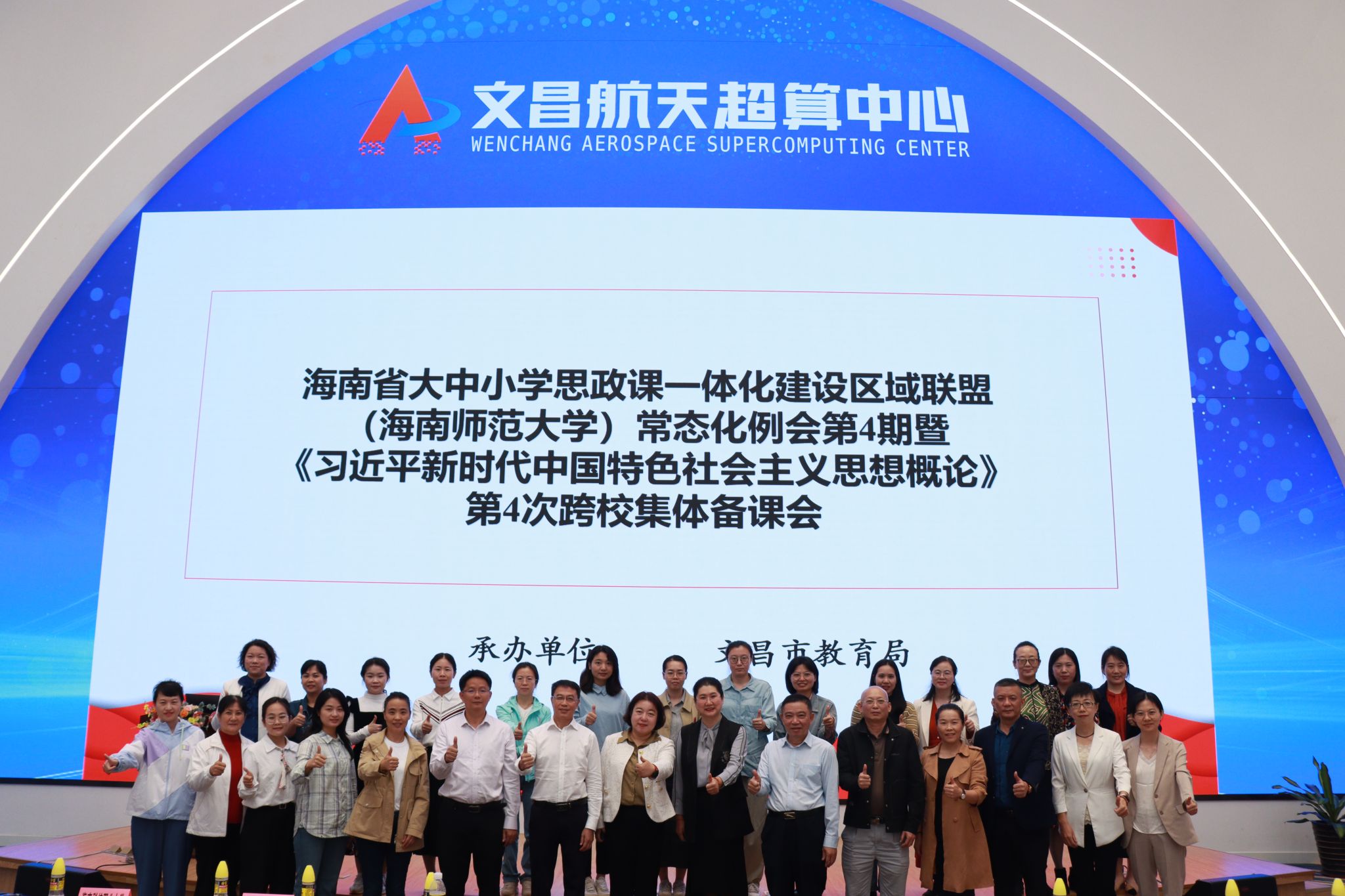 11月23日上午,以“将航天精神生动实践教学融入大中小学思政课”为主题的海南省大中小学思政课一体化建设区域联盟(海南师范大学)常态化例会第4期暨《习近平新时代中国特色社会主义思想概论》第4次跨校集体备课会在文昌市召开。会议由文昌市教育局党委委员、文昌市教培中心主任赵娜主持。马克思主义学院党总支书记邢益承和思政课教师邱静、周丽萍、林陈雅、阎毅和蒙倩娇等参加会议。