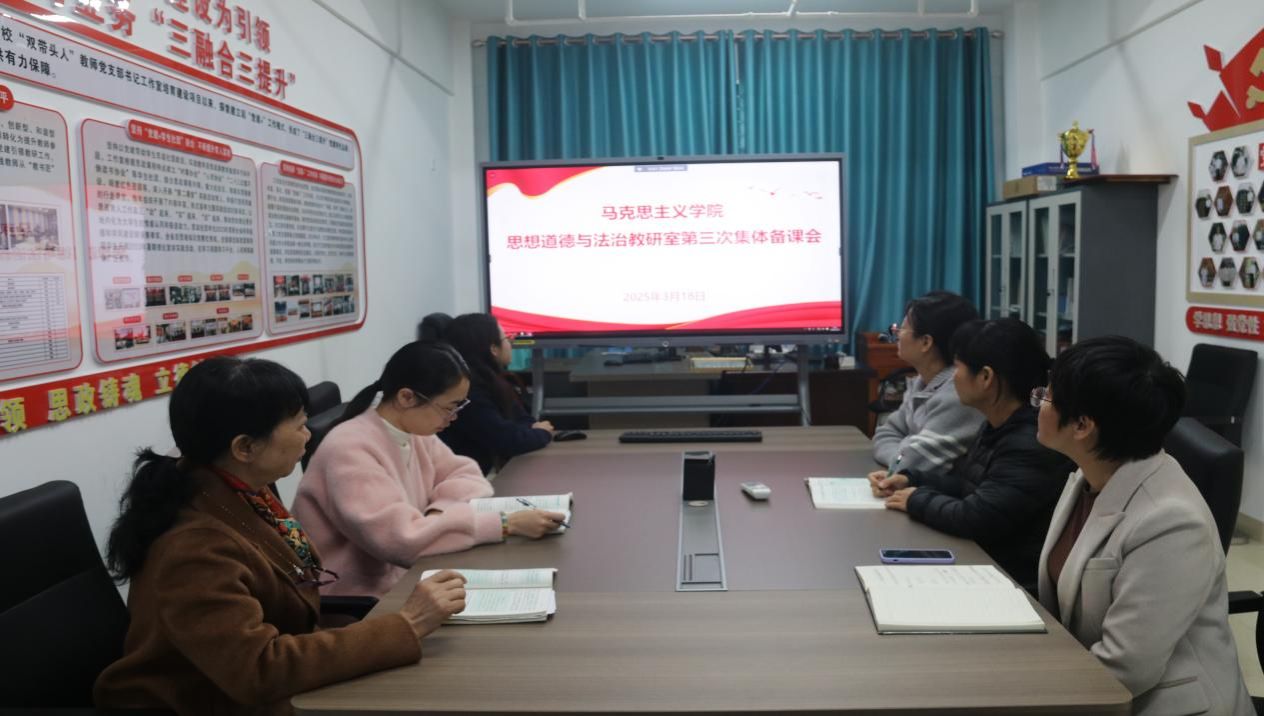 2025 年 3 月 18 日,思想道德与法治教研室召开了 2025 年春季学期第三次集体备课会。备课会由教研室主任陈若团副教授主持,文泽佳老师和肖宝佳老师主备,围绕《思想道德与法治》第五章 “遵守道德规范 锤炼道德品格” 教学内容展开深入研讨,教研室全体教师参加。