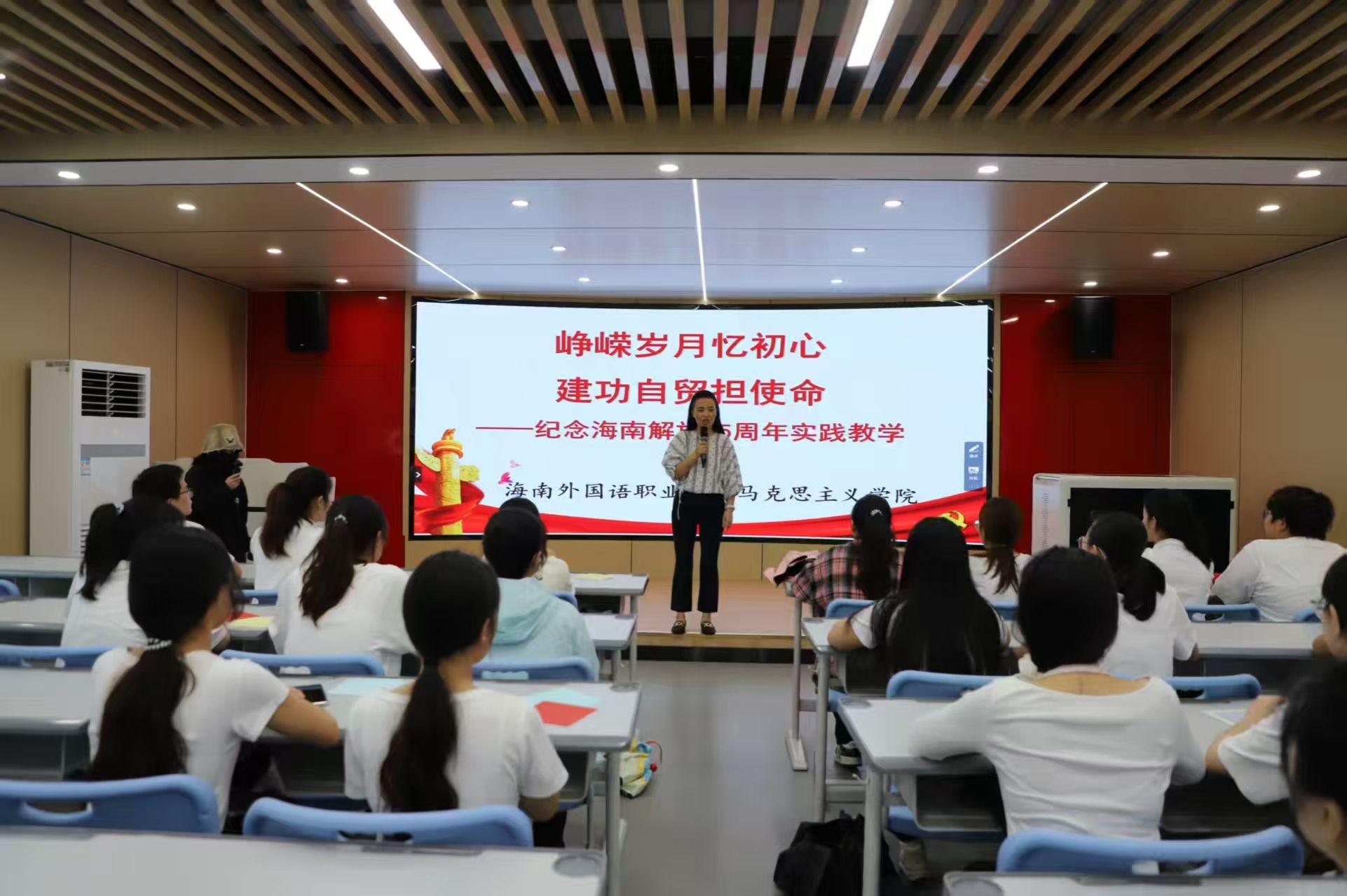 从解放海南的“小木船精神”到自贸港建设的“改革闯将精神”,这堂行走的思政课打通了历史与现实的连接,从课堂到场馆,从“老师讲”到“师生共讲”,从单一讲授式教学到多元化教学,实现思政课“可听可看可感”,学生看到、学到、感悟到张云逸将军、冯平烈士的英雄事迹、精神力量,必将汇聚为青年大学生投身自贸港建设的不竭动力。
