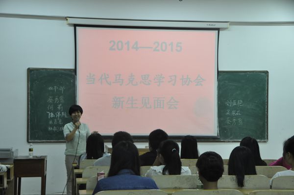 2014年11月4日晚上20时,当代马克思主义学习协会2014—2015学年新老成员见面会在多媒体14教室召开,出席本次见面会的人员有协会会长周丽萍老师、协会成员以及协会新成员,会议由副会长王显杰主持。