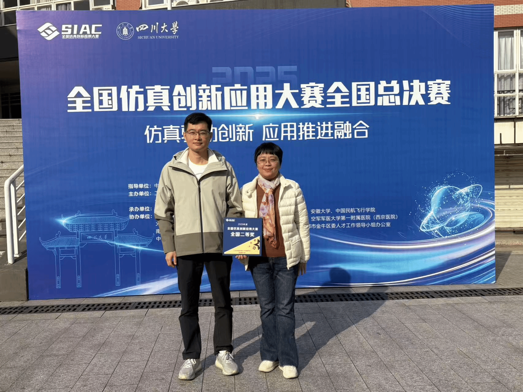11月24日,备受瞩目的2025年全国仿真创新应用大赛全国总决赛在四川大学落下帷幕。我院选送的参赛作品《航天精神之文昌逐梦》在2025年全国仿真创新应用大赛全国总决赛中,凭借其深刻的主题立意、创新的设计理念和精湛的技术呈现,一路过关斩将,荣获仿真教学应用赛道职教组全国二等奖。 本次大赛由工业和信息化部人才交流中心主办,四川大学创新创业学院承办,协办单位有清华大学、南开大学、西安交通大学、西北工业大学等十多家单位,汇聚了来自全国各地的优秀参赛团队。比赛过程中,各参赛队伍各展风采,竞争异常激烈。我院周清云、邢益承、王晓飞、陈若团四位老师,联合成都智云鸿道信息技术有限公司研发团队成员共同组成团队,精心筹备,以航天精神为指引,以文昌航天发射场为创作蓝本,精心打造了这一虚拟仿真实验作品。作品通过高度逼真的虚拟场景,生动再现了航天发射的全过程,让体验者仿佛置身于文昌航天发射现场,深刻领略到航天事业的宏伟与航天精神的伟大。其独特的创意和深刻的主题立意,赢得了评委们的一致好评。