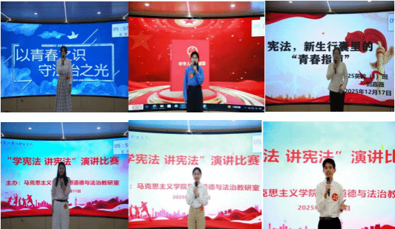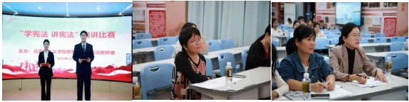 为深入学习贯彻习近平法治思想,大力弘扬宪法精神,马克思主义学院于12月17日晚在思政实践教学中心举办“学宪法,讲宪法”主题演讲比赛,比赛由《思想道德与法治》课教研室牵头组织。