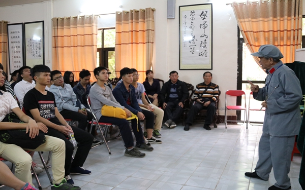 首先,前往讲解室观看介绍母瑞山的视频,再听王馆长讲解母瑞山的历史。王馆长退休后已在定安母瑞山革命纪念馆义务讲解了15年,对于母瑞山的历史烂熟于心,所以,王馆长讲解母瑞山革命事迹讲得有声有色,在座的师生们都聚精会神、全神贯注地听讲。王馆长讲解了王文明、冯白驹等革命先辈的感人事迹,并详解了母瑞山精神的内涵,呼吁同学们要弘扬母瑞山精神,坚定爱国主义理想信念,立志成才,报效祖国,为实现中国梦而奋斗。讲解结束之后,紧接着就是参观历史文物,重温红色记忆,缅怀先烈。一张张革命照片展现浴血征程,一件件抗战遗物令人梦回往昔。还有各种各样返现抗战情景蜡像,栩栩如生。让同学们目不转睛、感叹不已。同学们在入党宣誓词面前庄严肃立,然后全体成员在母瑞山革命根据地纪念园的大门前拍了合照留念,并在老师的指挥下到王文明、冯白驹的铜像前为革命先辈默哀一分钟和三鞠躬。