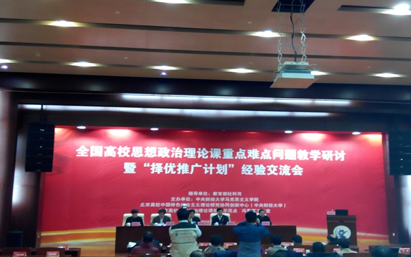 2016年12月24日—12月26日,全国高校思想政治理论课重点难点教学研讨暨“择优推广计划”经验交流会在北京招开,我院教育部社科司思想政治理论课教学方法改革择优推广培育项目“以社团为载体的系统化思政课实践教学模式创新”的主持人周运诗副院长受邀参加,由于周运诗副院长有其它会议,社科部负责人周清云和思政课教师周群林代为参加此次会议,此次会议由中央财经大学马克思主义学院主办,与会代表近200名。