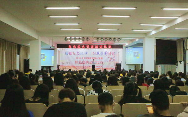 缅怀红色峥嵘岁月,领略红色文化魅力,传承红色永恒经典。11月21日晚,由我院思政部主办、英语系协办的“追忆红色经典 传承爱国情怀”红色经典诵读比赛在图书馆多功能报告厅举行。15支队伍以高昂的热情和饱满的精神状态在比赛中进行诵读展示。