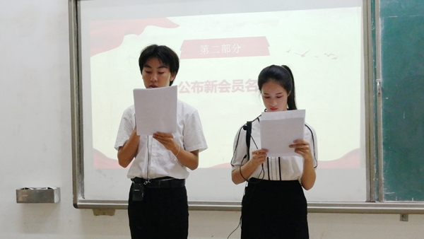 大会第二项由主持人陈潇和许彬玲宣读新会员名单,最后由协会指导教师赵佳钰宣读社团章程、布置本学期协会工作,使会员明确了“二十三年红旗不倒”读书协会是学习型协会的性质,以及本学期的学习内容和活动目标。