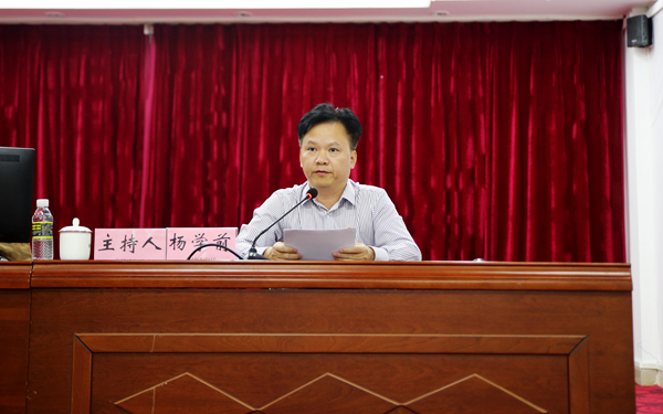 为在“不忘初心、牢记使命”主题教育中学习好、贯彻落实好党的十九届四中全会精神,引导全院广大党员群众把思想和行动统一到全会精神上来,推动我院兴起学习宣传贯彻全会精神的热潮,12月2日下午,我院在图书馆多功能报告厅举办党的十九届四中全会精神宣讲报告会,邀请海南大学资深教授、省委十九届四次全会宣讲团成员李俊教授来校,为师生作党的十九届四中全会精神解读。学院党委书记曾锋、副院长杨学前、党委委员梁松,以及全体副科级以上干部、师生党员及入党积极分子聆听报告。杨学前副院长主持报告会。