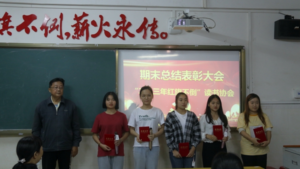 2019年12月24日,“二十三年红旗不倒”读书协会2019-2020学年第一学期总结表彰大会在二教2203教室顺利召开, 思政部概论教研室主任兼协会指导教师赵佳钰主持会议,思政部负责人周清云、关工委主任韩祝畴、关工委陈老师献积、思政部张敏老师及全体会员参加。