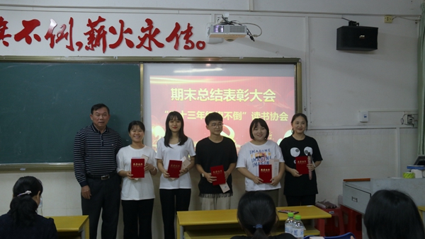 随后周清云主任、韩祝畴主任、陈献积老师和张敏老师为优秀会员颁发奖状和奖品,并合影留念。