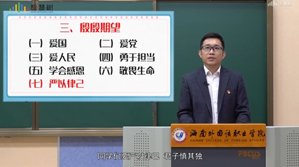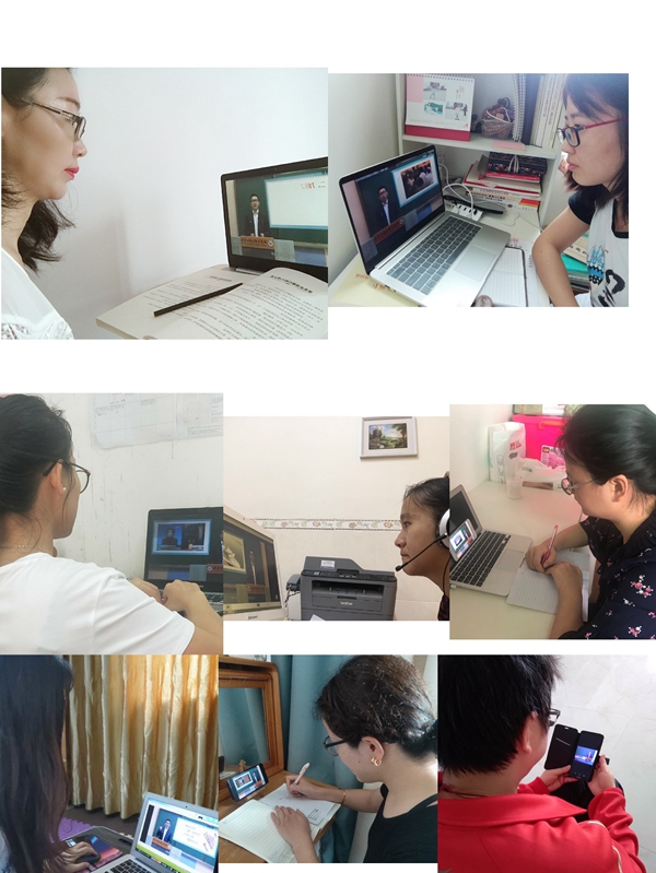学习结束后,思政部全体教师通过网络进行学习交流。基础教研室主任陈若团说,曾峰书记给全体师生上了生动的“开学第一课”,他用一个个鲜活生动的事例阐述了中国特色社会主义制度的巨大优势,让我们感受到了中国力量、中国速度和中国奇迹;思政课教师梁其桃老师说,在这场战“疫”中,让我更加体会到我们的国家、政府以及全国人民众志成城,齐心协力抗击疫情的决心和信心,不同的岗位、不同的行业通过不同的方式积极努力,我们接下来要做的就是备好课,上好课,保证线上教学活动顺利进行;心理学教师王海燕说,在做好网络授课的同时做好学生的心理疏导工作。