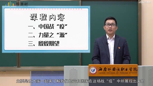 曾峰书记从中国战“疫”、力量之“源”和殷殷期望三个方面给全体师生上了一堂特殊的一课,让大家了解中国共产党和国家在这场战“疫”中所展现出来的中国力量、中国速度、中国奇迹,以及背后的根源。希望给全体师生带来更多的信心和温暖,更寄语大学生在这场抗 “疫”大战中成长成熟,做出青年学生应有的贡献,扛起当代青年的责任担当。