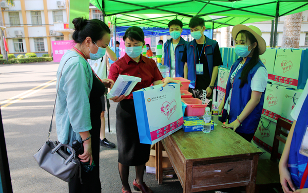 她还查看了学生入校时的消毒及测温通道等防疫设施设备运行情况,对为每位返校的同学准备的“爱心防疫物资包”、解暑绿豆汤和各部门在校门口贴心准备的遮阳伞、折叠扇、发夹、风油精等暖心物品表示赞许。