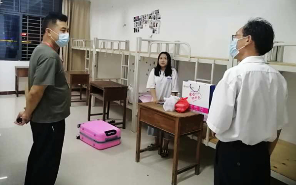 看到同学们顺利进入校园后,李渝凤院长主动迎上前去,向他们表达了问候,亲切询问了解他们的返校过程等相关情况,鼓励他们返校后在做好个人防护的同时,要更加用心地学习,学院一定会全力做好各项后勤保障服务,让同学们安心地在校园里学习和生活。她还亲手把装有口罩、体温计、防疫知识手册、纸巾、水、食品等物品的“爱心防护包”递到了同学们手中。