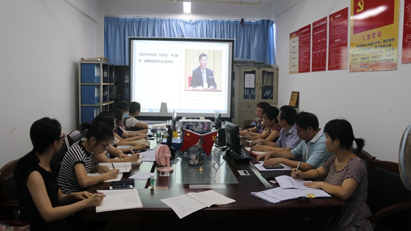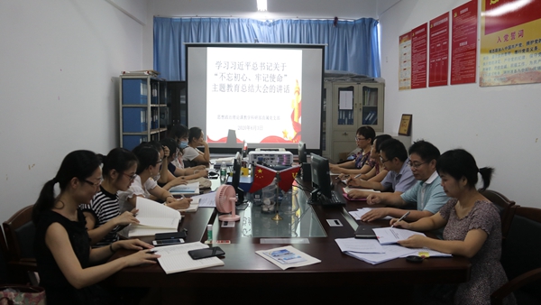 2020年6月3日下午15,思政部直属党支部组织全体党员在C606党员活动室学习习近平总书记在“不忘初心、牢记使命”主题教育总结大会上的讲话原文。会议由直属党支部书记周清云主持。
