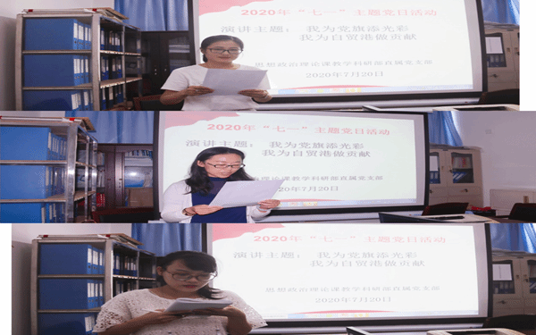 演讲过程中,每位教师党员围绕活动主题,结合疫情防控期间的自身学习和本职工作感悟,从不同角度用真切的情感和朴实的语言诠释了教师党员应有的责任和担当。演讲最后,思政部直属党支部书记周清云同志强调,通过此次主题演讲活动,进一步提高党员的党性修养,把“初心”和“使命”落实到各项工作中,积极探索创新,以新担当实现新作为,助力海南自贸港建设。