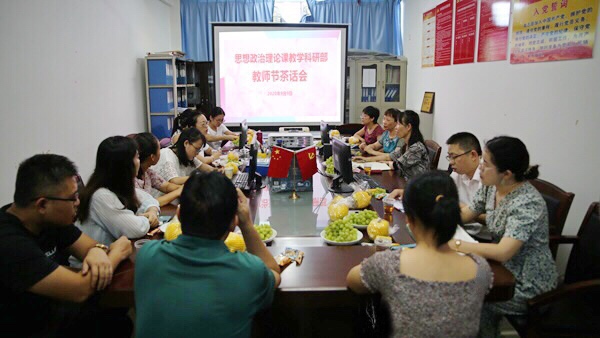 随后,黄丽芹副书记向思政课部全体教师致以节日的祝贺和亲切的慰问,她指出,在新时代的新起点上,思政部教师肩负着落实立德树人的根本任务,这就需要在储备学识上发奋图强,在教育教学上与时俱进,在课题研究上攻坚破难,不断提高教书育人本领,成为政治素质过硬、业务能力精湛、育人水平高超的高素质教师,成为有理想信念、有道德情操、有扎实学识、有仁爱之心的“四有”好老师。