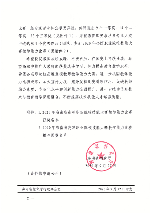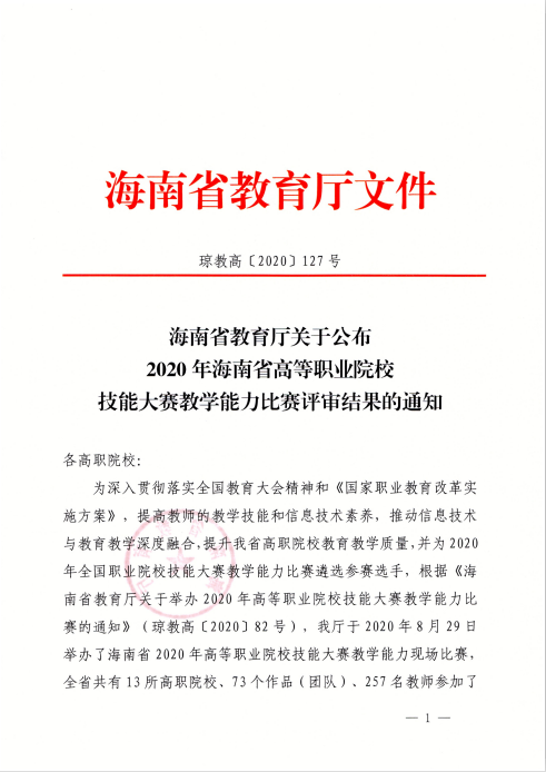 恭喜思政部教师参加2020年海南省高等职业院校技能大赛教学能力比赛荣