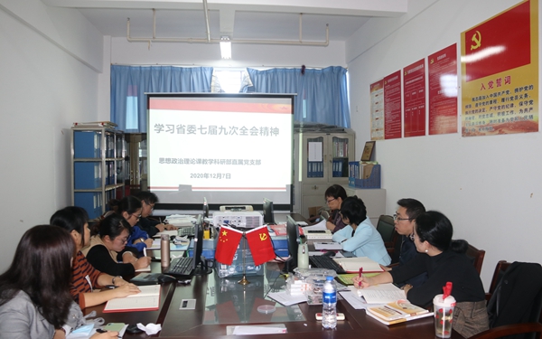 2020年12月7日下午15:00分,思想政治理论课教学科研部直属党支部组织党员在综合楼606党员活动室召开会议,学习海南省委七届九次全会精神。本次会议共有9名党员教师参加,直属党支部书记周清云主持会议。通过认真学习,全体党员纷纷表示,切实把思想和行动统一到党中央决策部署上来,为海南自由贸易港建设培养更多人才。